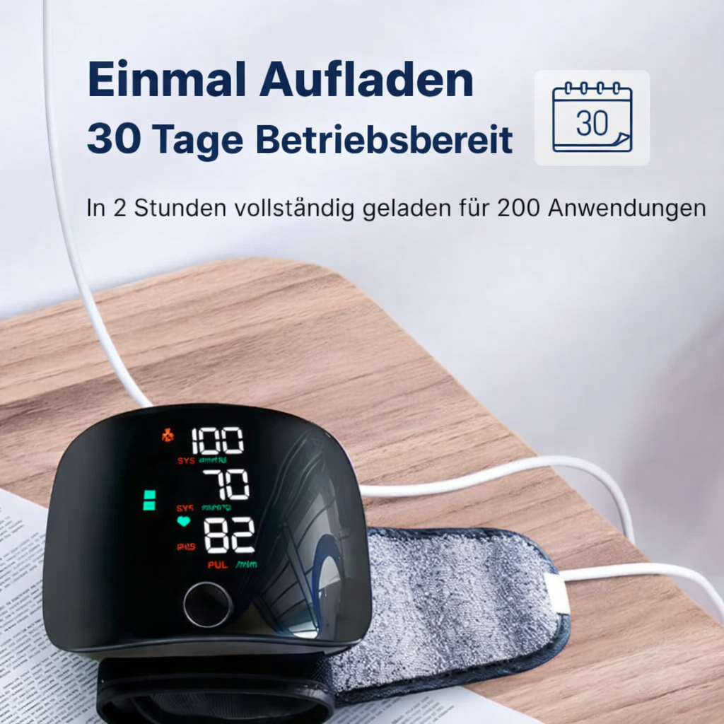 Vergessen Sie ständiges Batteriewechseln. Dieser Monitor verfügt über einen integrierten, wiederaufladbaren Lithium-Akku, der eine lange Akkulaufzeit und bequemes Laden über USB-C ermöglicht. Er ist jederzeit bereit für Ihre nächste Messung.