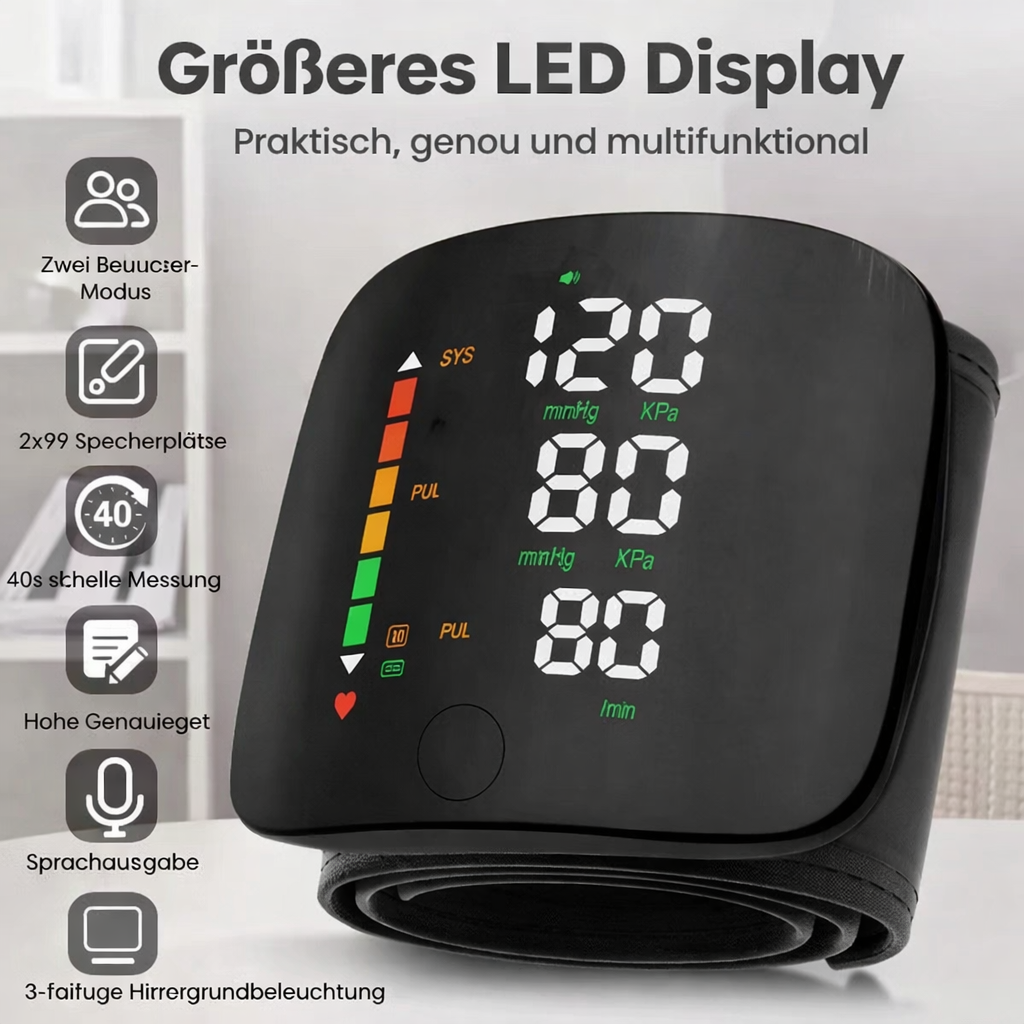 Im Gegensatz zu herkömmlichen Monitoren, deren Ergebnisse ungenau sein können, verwendet dieses Gerät einen hochentwickelten Kernchip und einen verbesserten Algorithmus, um konsistente Ergebnisse für zuverlässige Messungen zu gewährleisten.